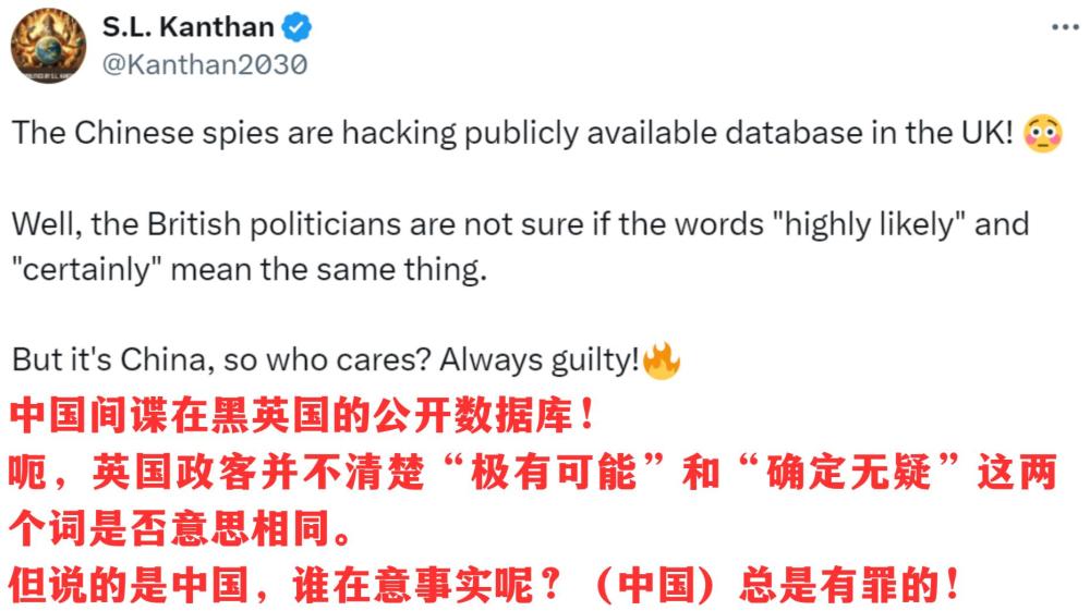 如今,“中國=網(wǎng)絡(luò)黑手”似乎成了某些西方政客用來解釋一切負(fù)面事件的萬能答案。凱特王妃被網(wǎng)友“黑”過頭?怪中國去。一艘由丹麥公司租用、懸掛新加坡國旗、前往斯里蘭卡的船撞上美國橋?還是怪中國去。
