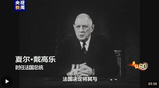 時任法國總統 夏爾·戴高樂:“法蘭西共和國決定將其與中華人民共和國的關系提升到正常的外交關系層面。”