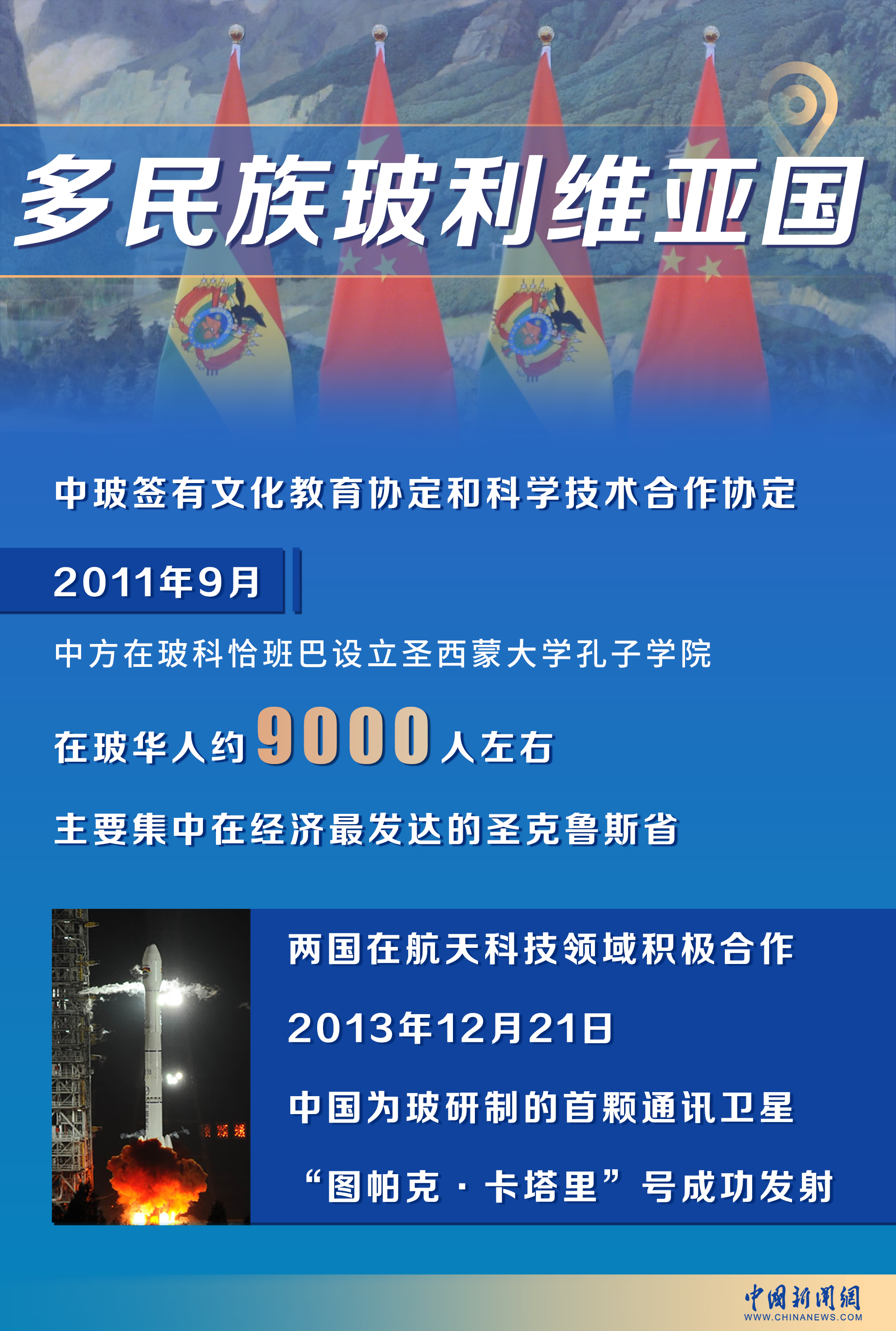 中玻兩國在航天科技領(lǐng)域的合作尤為突出。2013年12月21日,中國為玻利維亞研制的首顆通訊衛(wèi)星“圖帕克·卡塔里”號成功發(fā)射,這也是兩國科技合作的重要成果。