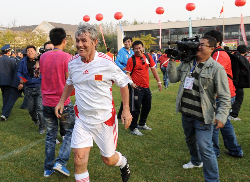2011年10月7日,前中國國家男子足球隊(duì)主教練米盧故地重游,在沈陽和他當(dāng)年的“戰(zhàn)友”、弟子共同慶祝中國足球隊(duì)世界杯出線十周年。2001年10月7日,米盧率領(lǐng)中國國家隊(duì)在沈陽五里河體育場以1比0戰(zhàn)勝阿曼隊(duì),提前兩輪獲得韓日世界杯入場券,圓了中國足球44年的世界杯夢想。新華社記者李鋼攝