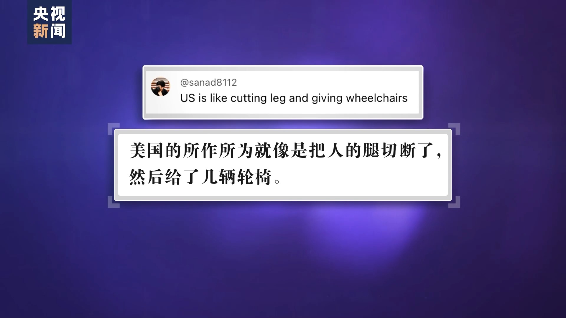 ——美國的所作所為就像是把人的腿切斷了,然后給了幾輛輪椅。
