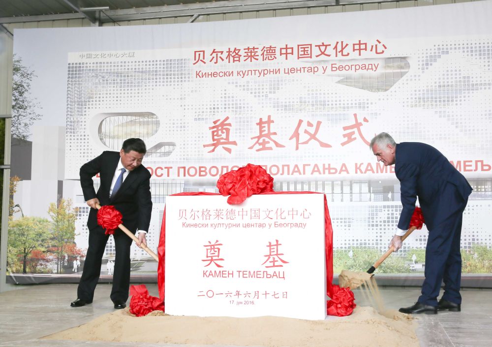 2016年6月17日,國(guó)家主席習(xí)近平與時(shí)任塞爾維亞總統(tǒng)尼科利奇在貝爾格萊德共同出席中國(guó)文化中心奠基儀式。