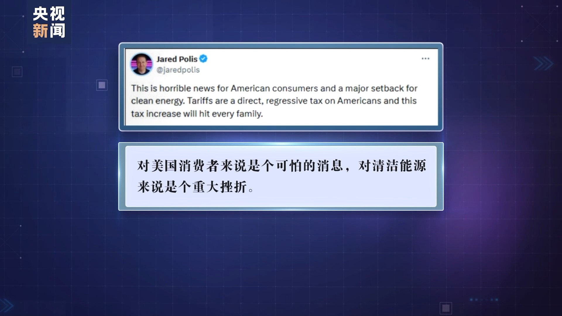 科羅拉多州民主黨籍州長賈里德·波利斯也在社交媒體平臺(tái)發(fā)帖寫道,此舉“對(duì)美國消費(fèi)者來說是個(gè)可怕的消息,對(duì)清潔能源來說是個(gè)重大挫折”。