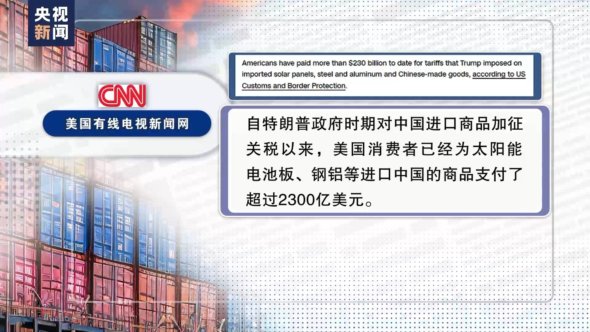 事實(shí)證明,美國保護(hù)主義措施無一例外只是“回旋鏢”式的自傷游戲。據(jù)美國有線電視新聞網(wǎng)3月引用美國海關(guān)及邊境保護(hù)局?jǐn)?shù)據(jù),自特朗普政府時(shí)期對(duì)中國進(jìn)口商品加征關(guān)稅以來,美國消費(fèi)者已經(jīng)為太陽能電池板、鋼鋁等進(jìn)口中國的商品支付了超過2300億美元。