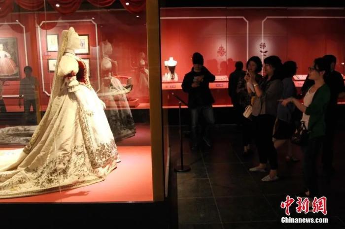 2018年5月28日,展出的匈牙利宮廷正裝吸引民眾。當日,“茜茜公主與匈牙利——17-19世紀的匈牙利貴族生活”展覽于西安的陜西歷史博物館開展,這是陜西省第一次引進匈牙利文物展覽。中新社記者 張遠 攝