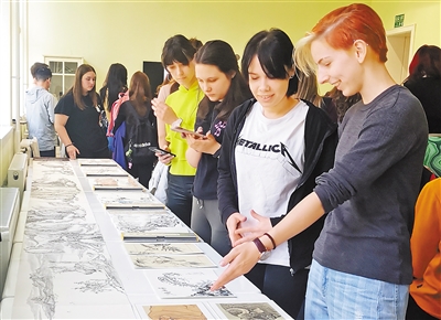 在諾維薩德大學(xué)孔子學(xué)院,學(xué)員正在欣賞中國傳統(tǒng)繪畫作品。諾維薩德大學(xué)孔子學(xué)院供圖