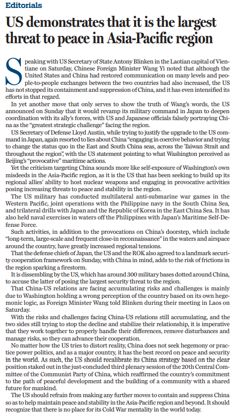 原文標題:US demonstrates that it is the largest threat to peace in Asia-Pacific region