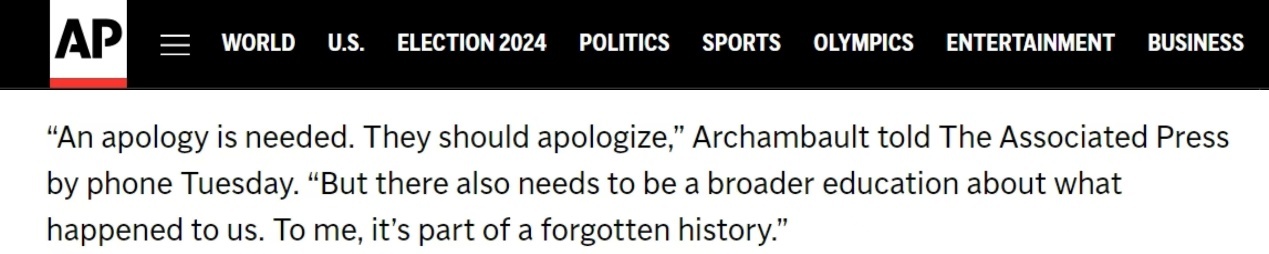 “道歉是必要的,他們應(yīng)該道歉。而我們也需要對發(fā)生在我們身上的事情進(jìn)行更廣泛的教育。對我來說,這是一段被遺忘的歷史?!?/p>