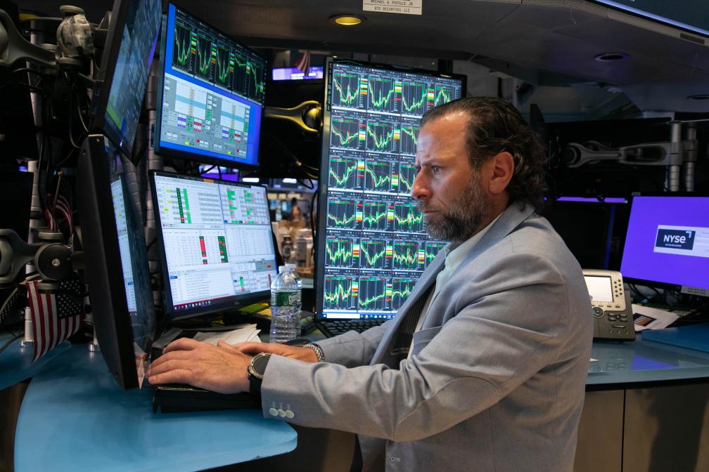 5月3日,交易員在美國紐約證券交易所交易大廳工作。新華社發(fā)(郭克攝)