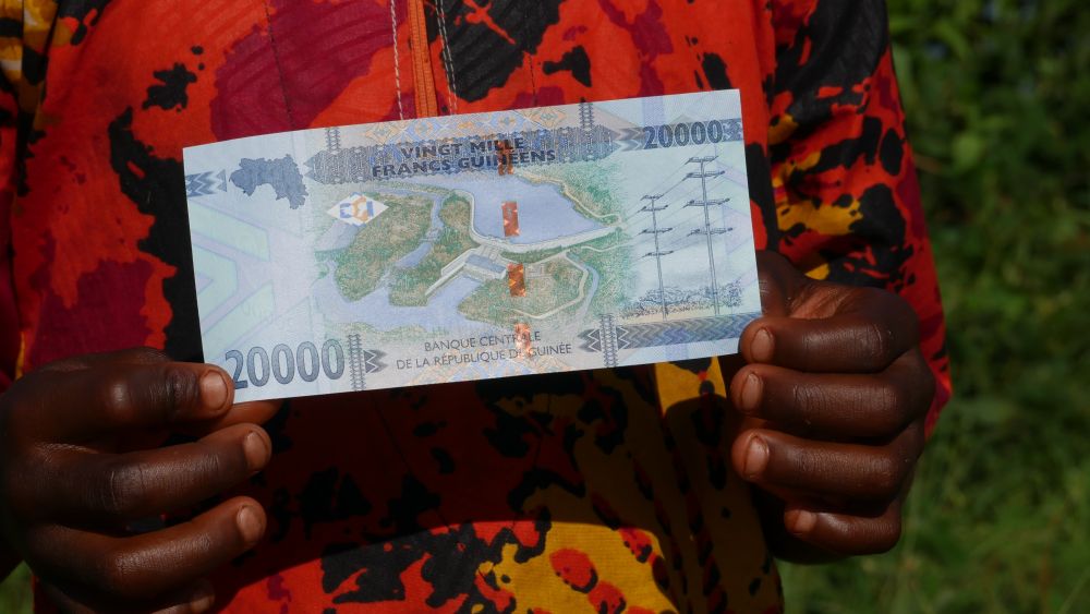 水電站的實(shí)際效果圖被印在面值2萬(wàn)幾內(nèi)亞法郎紙幣背面。2023年9月7日攝。新華社記者鄭揚(yáng)子攝