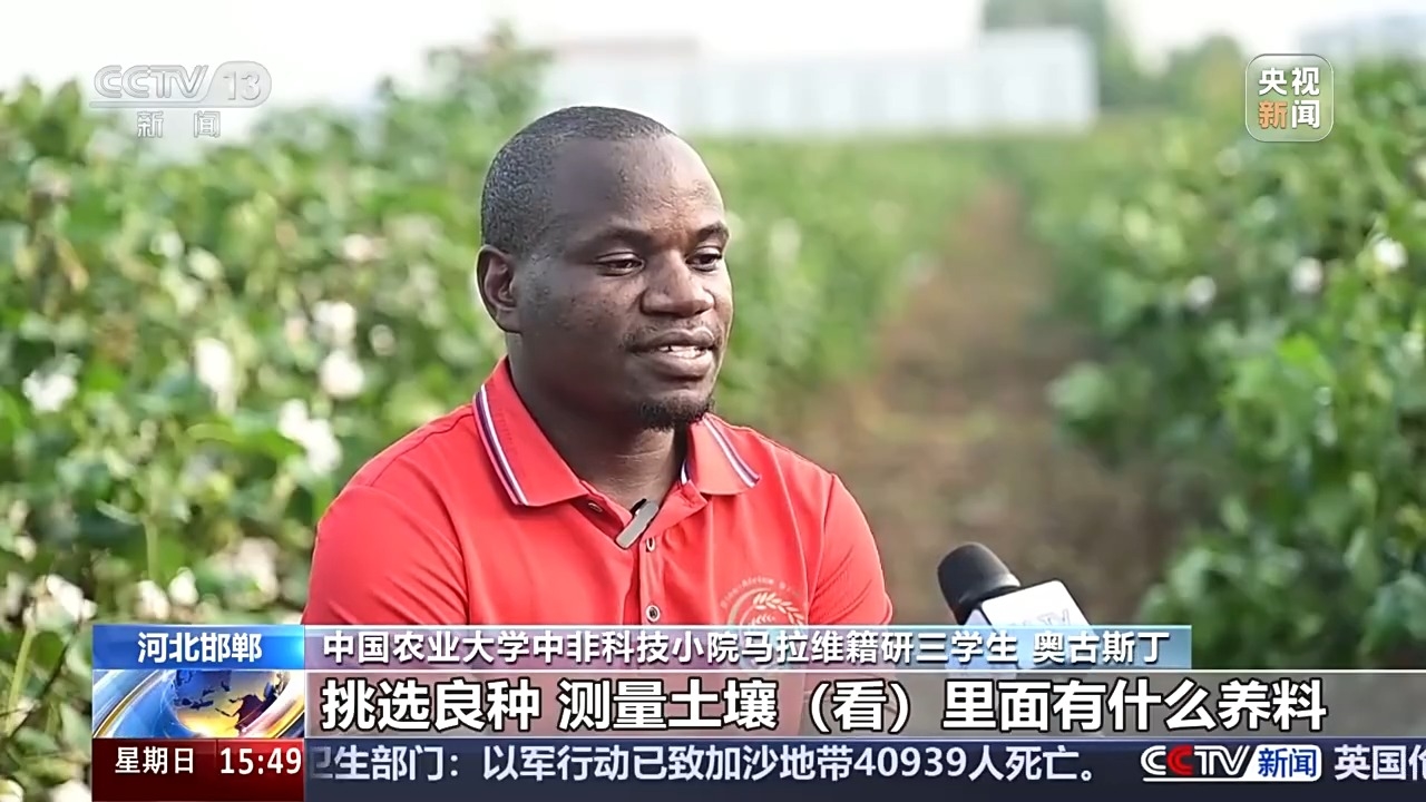 中國(guó)農(nóng)業(yè)大學(xué)中非科技小院馬拉維籍研一學(xué)生 馬達(dá):未來我也希望回國(guó)發(fā)展大農(nóng)場(chǎng),高效種植農(nóng)業(yè),保障國(guó)家糧食安全。馬拉維政府正鼓勵(lì)發(fā)展大農(nóng)場(chǎng),對(duì)我來說是個(gè)巨大機(jī)會(huì)。中國(guó)是非洲很好的榜樣,我非常感恩能來中國(guó)。