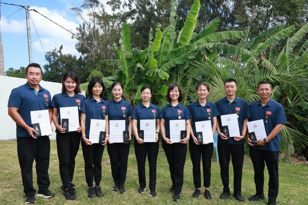 7月30日,在瓦努阿圖首都維拉港,中國援瓦醫(yī)療隊隊員手持證書合影。瓦努阿圖總統(tǒng)武羅巴拉武當天向中國醫(yī)療隊9名隊員頒發(fā)“國家勛章”,以表彰他們?yōu)樘嵘哚t(yī)療衛(wèi)生服務(wù)水平、鞏固瓦中兩國醫(yī)療衛(wèi)生合作作出的卓越貢獻。新華社發(fā)(中國援瓦醫(yī)療隊供圖)