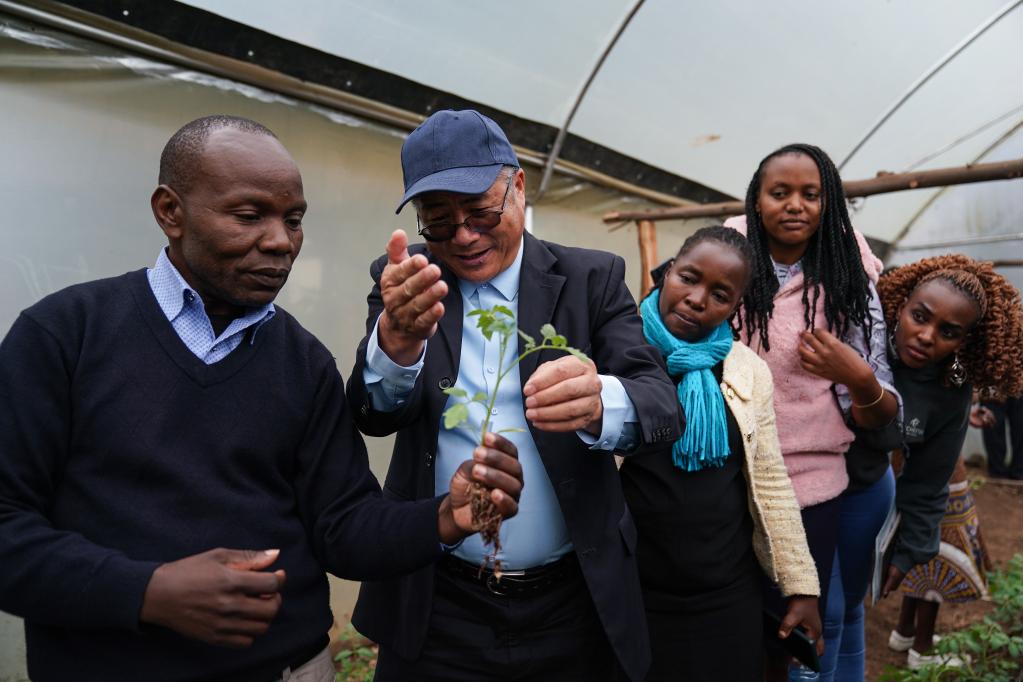 2023年9月18日,在肯尼亞納庫魯郡舉辦的中非農業(yè)發(fā)展和減貧示范村番茄生產培訓班上,來自中國的農學教授劉高瓊(左二)為肯方學員指導農業(yè)技術。新華社記者 韓旭 攝