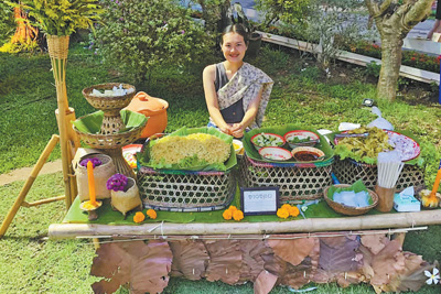 泰國楠府積極發(fā)展鄉(xiāng)村旅游。圖為當?shù)孛癖娫谡故镜胤教厣〕浴?/p>