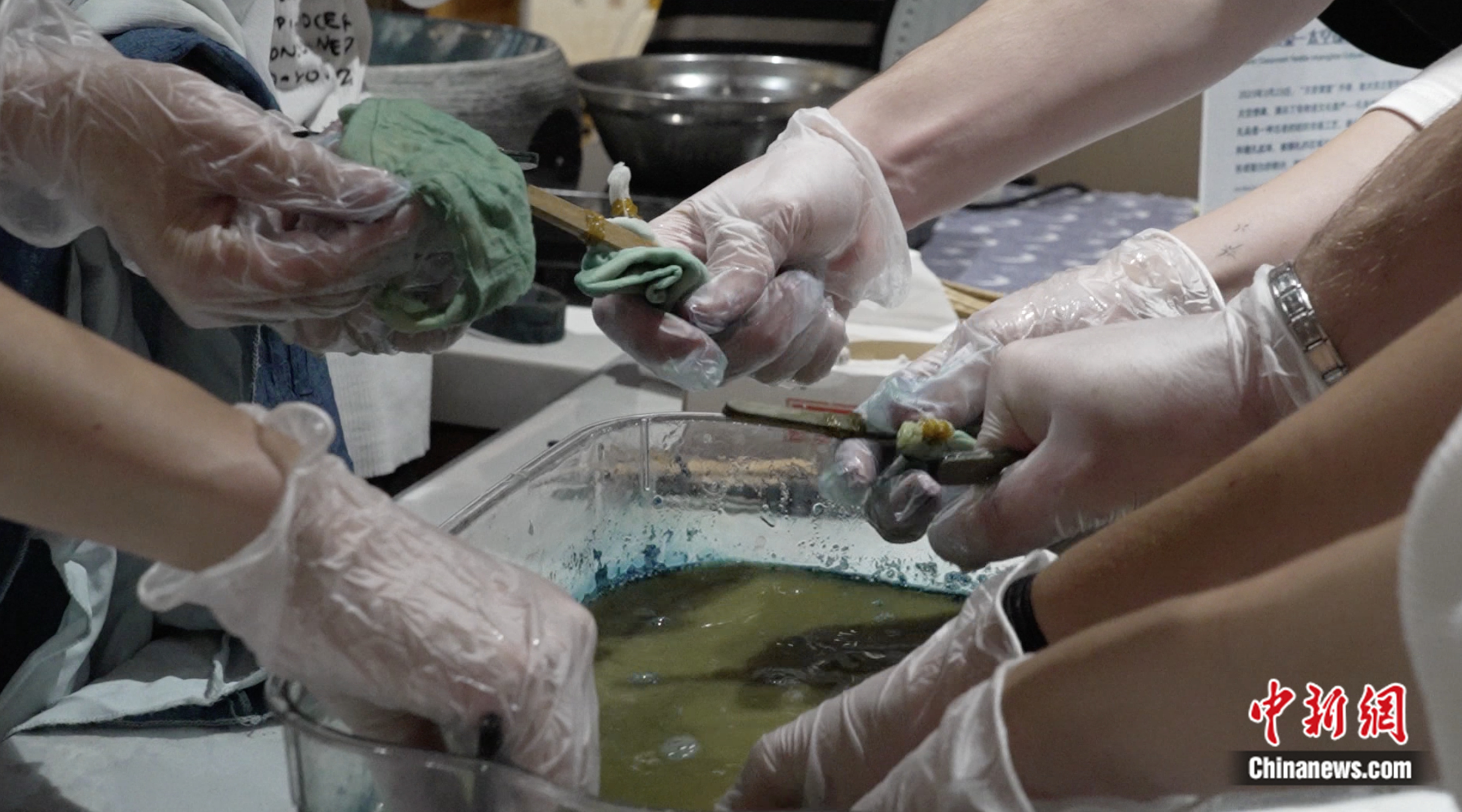 “洋弟子”體驗(yàn)高陽(yáng)草木染。 張子怡 攝