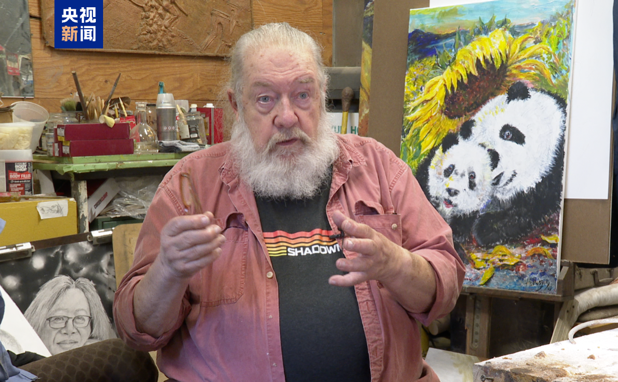 受到旅美大熊貓“云川”和“鑫寶”的啟發(fā),美國著名雕塑家、畫家尤里·霍洛西為“云中錦書”創(chuàng)作《沐浴陽光的和諧瞬間》。