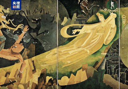 中國畫家楊曉陽的作品《遠(yuǎn)古足音》描繪了嫦娥奔月,寄托了中華民族千年飛天夢(mèng),而中國航天事業(yè)的發(fā)展正將這一夢(mèng)想化為現(xiàn)實(shí),書寫新的傳奇。