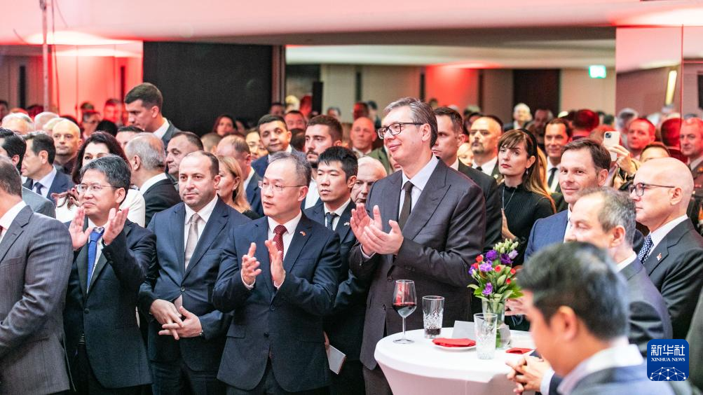 9月18日,在塞爾維亞首都貝爾格萊德,塞爾維亞總統(tǒng)武契奇(前中右)出席中國駐塞爾維亞大使館國慶75周年招待會(huì)。新華社發(fā)(王韡攝)