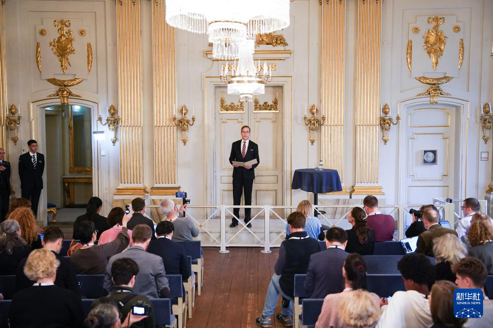 10月10日,瑞典文學(xué)院常任秘書馬茨·馬爾姆在斯德哥爾摩舉行的新聞發(fā)布會上揭曉獲獎?wù)?。新華社記者 彭子洋 攝
