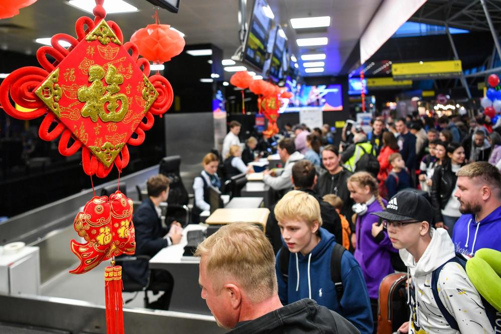 9月28日,在俄羅斯韃靼斯坦共和國喀山國際機(jī)場,搭乘喀山至上海直飛航班的乘客辦理值機(jī)。新華社記者曹陽攝