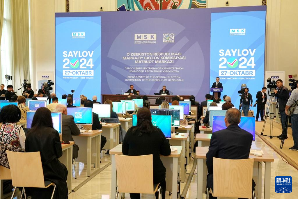 10月28日,烏茲別克斯坦中央選舉委員會(huì)在首都塔什干舉行新聞發(fā)布會(huì)。新華社發(fā)(扎法爾攝)