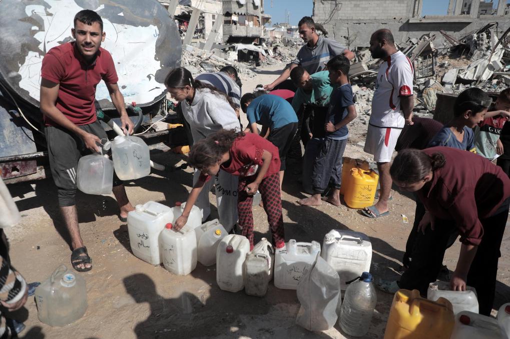 10月20日,人們在加沙地帶南部城市汗尤尼斯取水。新華社發(fā)(里澤克·阿卜杜勒賈瓦德攝)