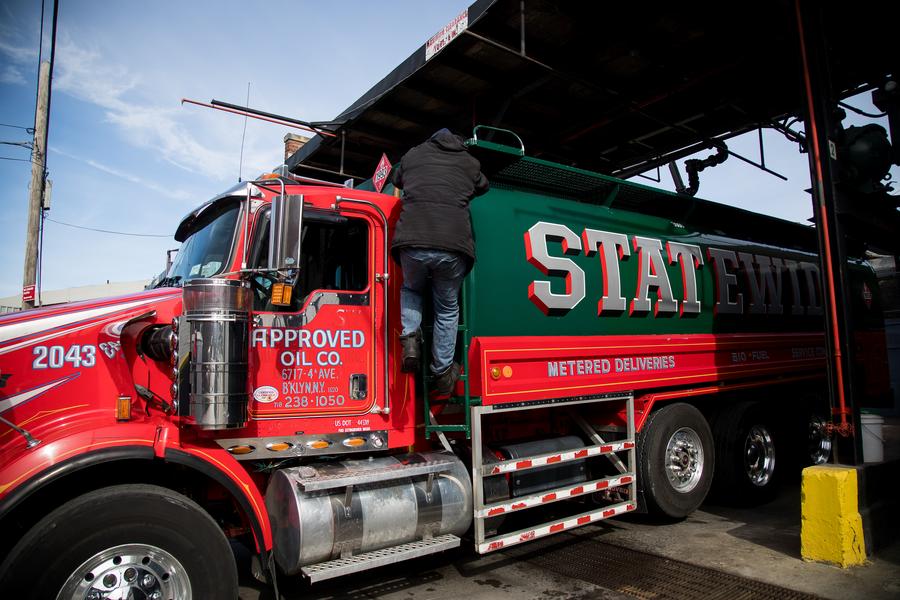 2022年3月8日,一輛運(yùn)油車駛過美國紐約街頭。新華社發(fā)(邁克爾·內(nèi)格爾攝)