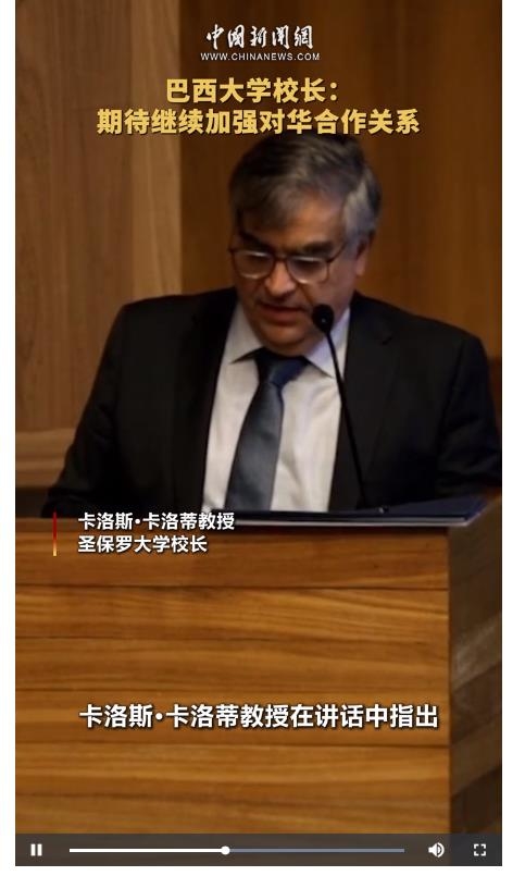 近日,“中巴青年故事會”活動在巴西圣保羅大學舉行,圣保羅大學校長卡洛斯·卡洛蒂教授(Carlos Carlotti)在講話中指出,巴中兩國有許多共同之處,在經(jīng)濟、農業(yè)、綠色能源、文化、電影等領域,合作潛力巨大,期待未來進一步加強對華合作。(制作 林卓瑋 攝像 郝云暉)