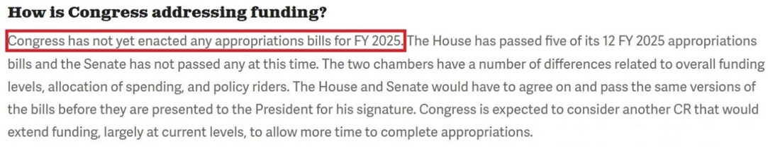 和以往一樣,白宮今年3月提出的2025財年預(yù)算案包含需要由國會中不同撥款委員會審批、分別為政府各機(jī)構(gòu)提供資金的12項撥款計劃,但這些年度撥款計劃迄今無一被國會通過。