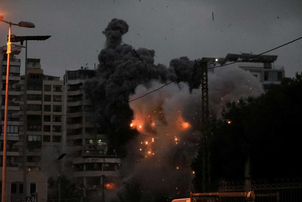 11月25日,在黎巴嫩首都貝魯特南郊,以軍空襲現(xiàn)場升起濃煙。新華社發(fā)