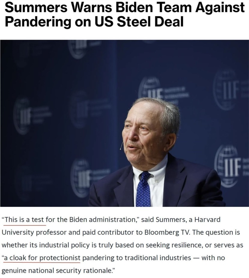 早在去年收購案推進過程中,美國前財政部長勞倫斯·薩默斯就曾表態(tài)認為,日鐵收購美鋼并不會構成“國家安全風險”。