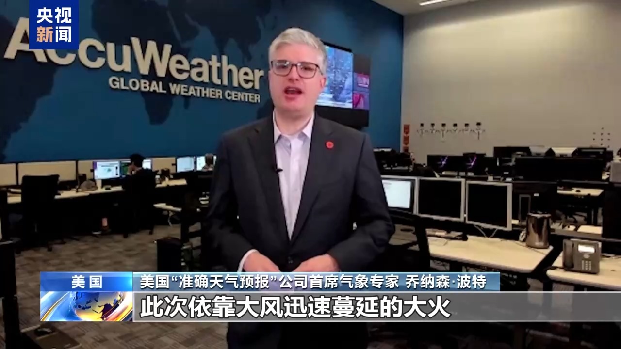 美國“準確天氣預報”公司首席氣象專家 喬納森·波特:我們的初步預測是,此次依靠大風迅速蔓延的大火在加州南部造成的財產(chǎn)經(jīng)濟損失,可以達到1350億至1500億美元。
