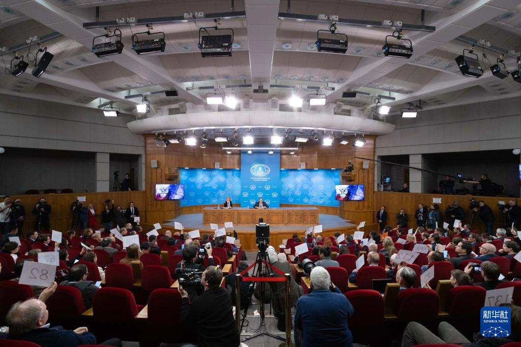 1月14日,在俄羅斯首都莫斯科,媒體記者舉手提問(wèn)。新華社記者 白雪騏 攝
