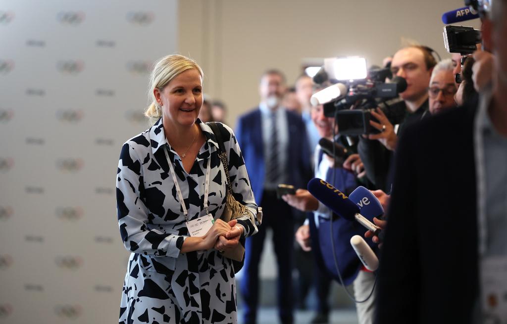 3月19日,國際奧委會(huì)執(zhí)委、國際奧委會(huì)主席候選人柯絲蒂·考文垂在會(huì)后離場。新華社記者 曹燦 攝