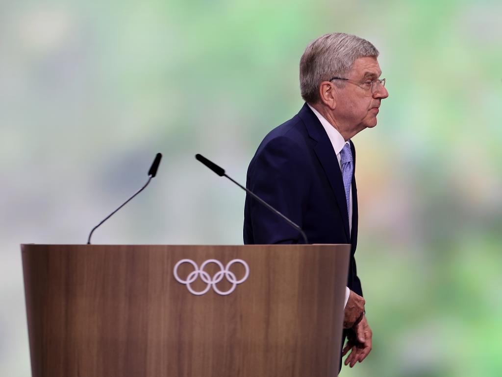 3月19日,國際奧委會(huì)主席巴赫在會(huì)上發(fā)言后離開。新華社記者 曹燦 攝