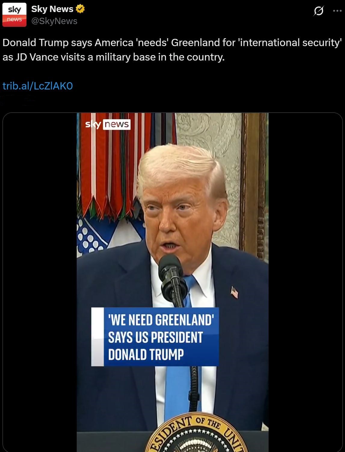“格陵蘭島對于美國的安全至關重要,而它現(xiàn)在非常脆弱。如果格陵蘭島人民愿與美國合作,而且我也認為他們最終會與美國合作,我們可以讓他們更安全。”