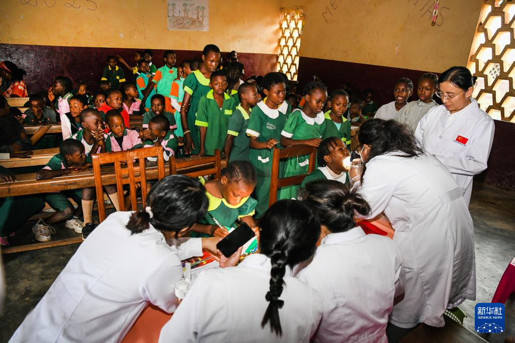 中國(山西)第24批援喀麥隆醫(yī)療隊姆巴爾馬約分隊3日在姆巴爾馬約市一所小學開展義診活動,為當?shù)貙W生和教職員工提供口腔檢查、健康咨詢及疾病預防宣教服務。