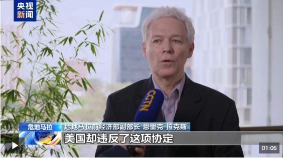 危地馬拉前經(jīng)濟部副部長 恩里克·拉克斯:美國的關(guān)稅政策背離所有基于規(guī)則的國際貿(mào)易準(zhǔn)則,我們中美洲國家與美國簽署了自由貿(mào)易協(xié)定,美國卻違反了這項協(xié)定。