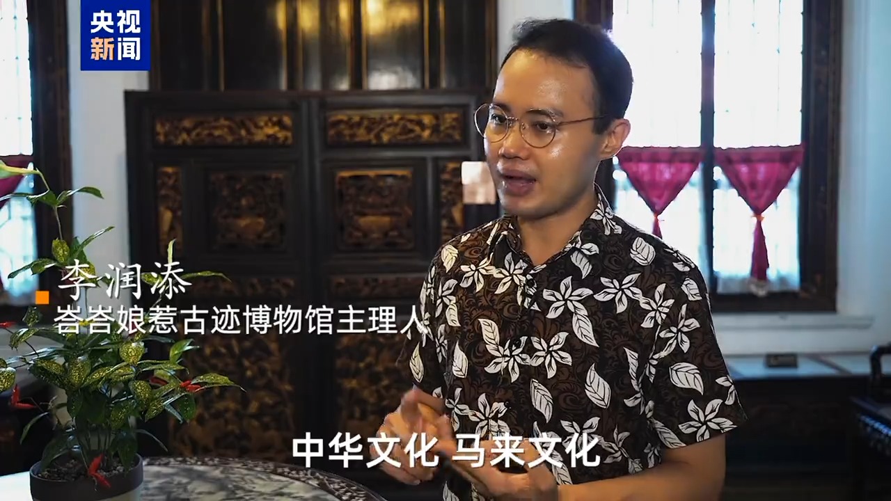 峇峇娘惹古跡博物館主理人 李潤(rùn)添:所謂的娘惹文化其實(shí)是中華文化、馬來(lái)文化以及西方文化的融合。眼看好像是從西方來(lái)的椅子,但是你仔細(xì)觀察,它的手扶那邊有龍頭,里邊還含著一粒珠。