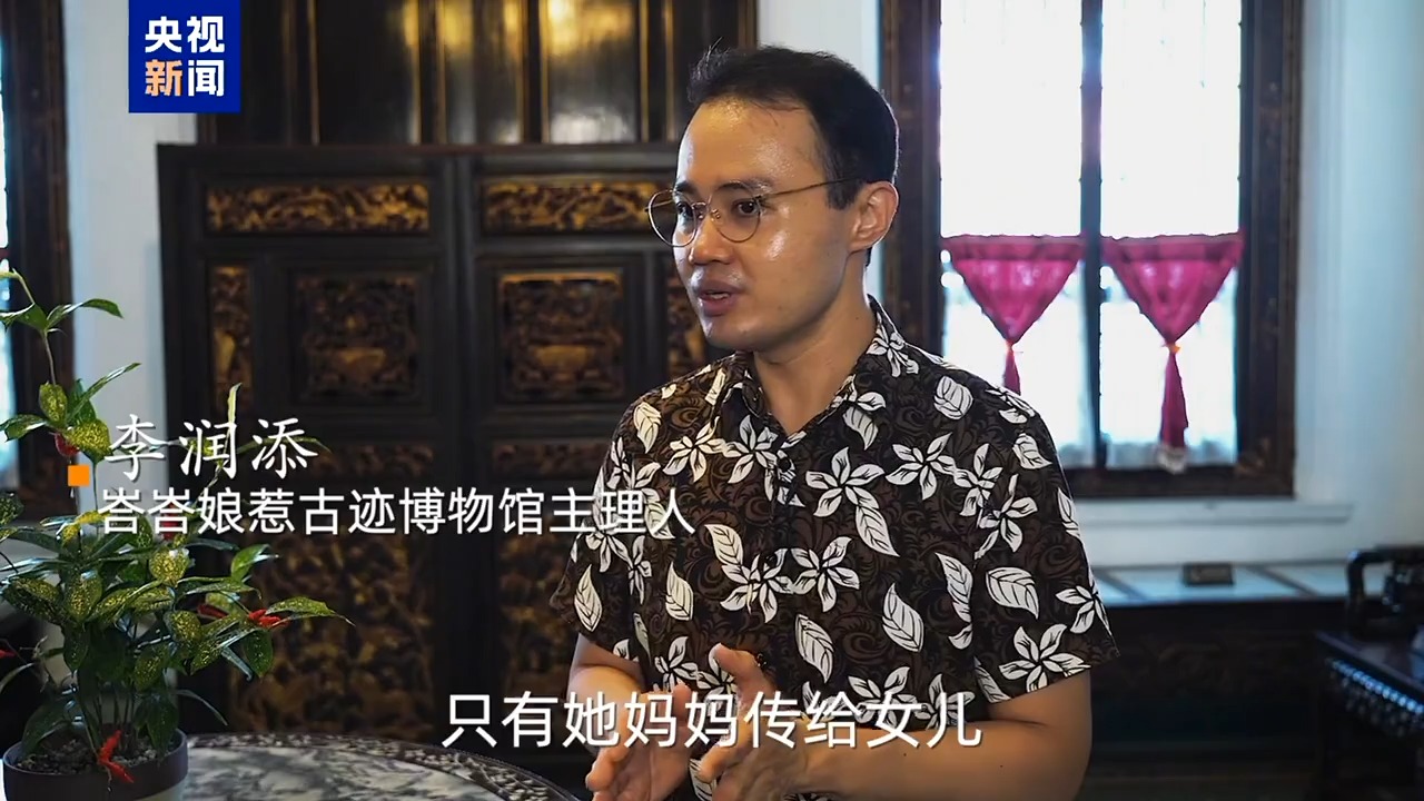 峇峇娘惹古跡博物館主理人 李潤(rùn)添:家傳的秘方從不外傳。媽媽傳給女兒,媽媽是從婆婆那里學(xué)來(lái)的,這樣代代相傳,娘惹家族都有好多這些小秘方。我是馬六甲的第五代峇峇,在我這一輩都是把孩子送去讀華?。R來(lái)西亞國(guó)民型華文小學(xué))??梢哉f(shuō)峇峇娘惹年輕一代都是會(huì)說(shuō)中文。