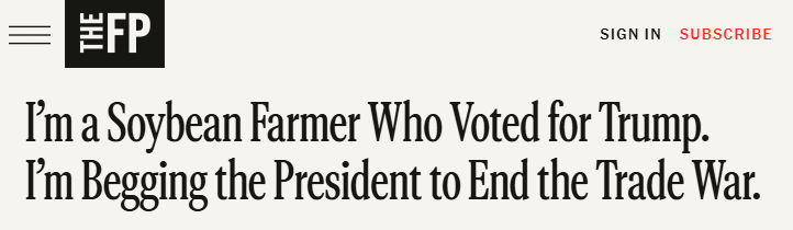 近日,拉格蘭德在The Free Press刊文表示,這場(chǎng)不斷升級(jí)的貿(mào)易戰(zhàn)對(duì)美國(guó)豆農(nóng)來說是個(gè)沉重打擊,因?yàn)橹袊?guó)是其最大的海外市場(chǎng)。對(duì)于許多美國(guó)大豆種植戶來說,這仿佛是2018年噩夢(mèng)般場(chǎng)景的重現(xiàn)。那是特朗普總統(tǒng)的第一個(gè)任期,其采取的關(guān)稅措施使美國(guó)農(nóng)業(yè)損失了260億美元,僅大豆產(chǎn)業(yè)就損失了近200億美元。