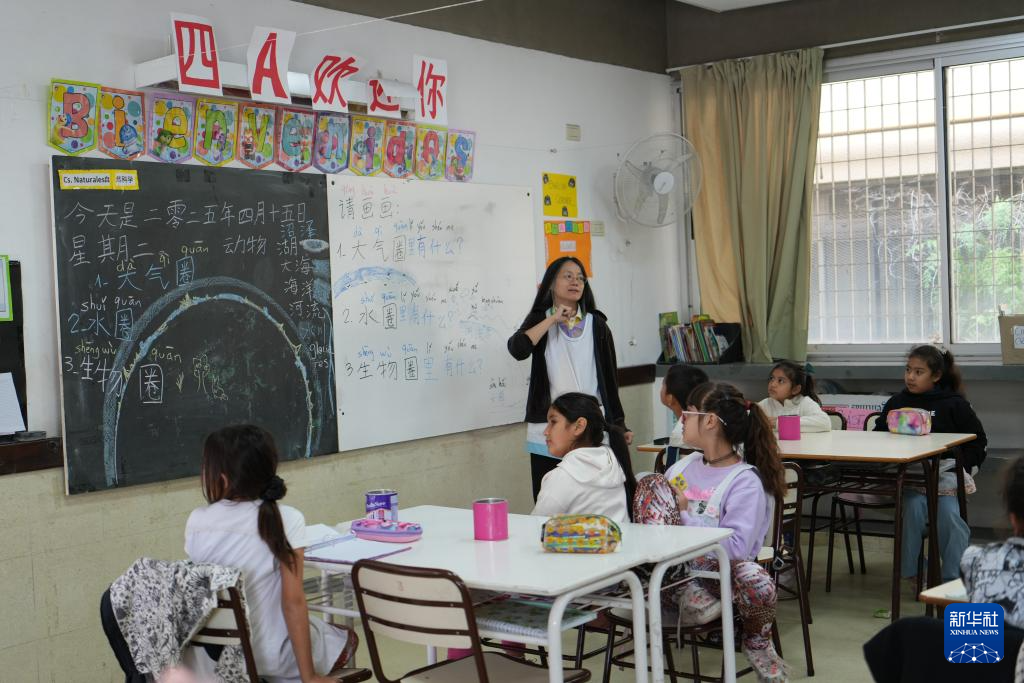 4月15日,阿根廷首都布宜諾斯艾利斯市第五學(xué)區(qū)第28號(hào)小學(xué)的中文教師在上課。新華社記者 張鐸 攝