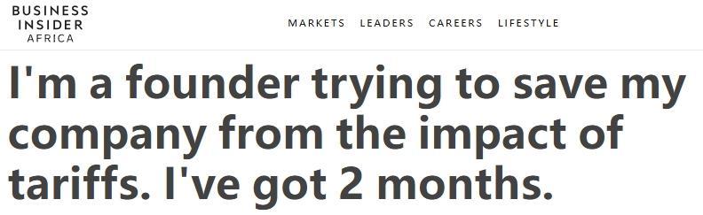 △商業(yè)內(nèi)幕網(wǎng)站刊載馬修·哈塞特的自述:《我是一名試圖在關(guān)稅壓力下挽救公司的小企業(yè)主,我還有兩個月的時間》