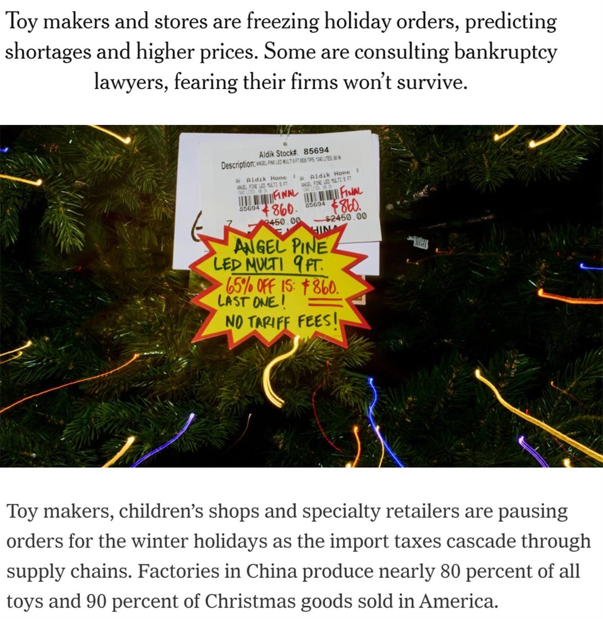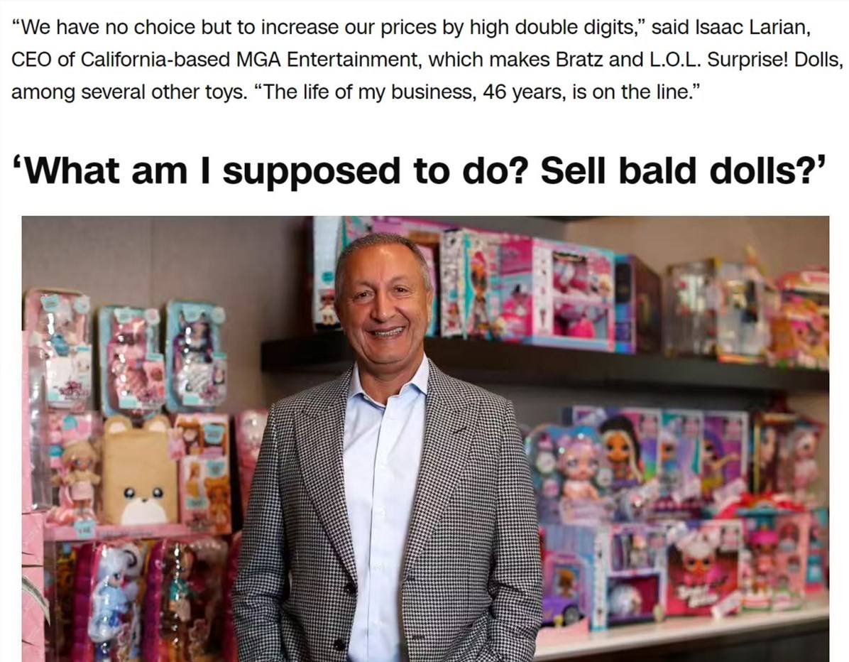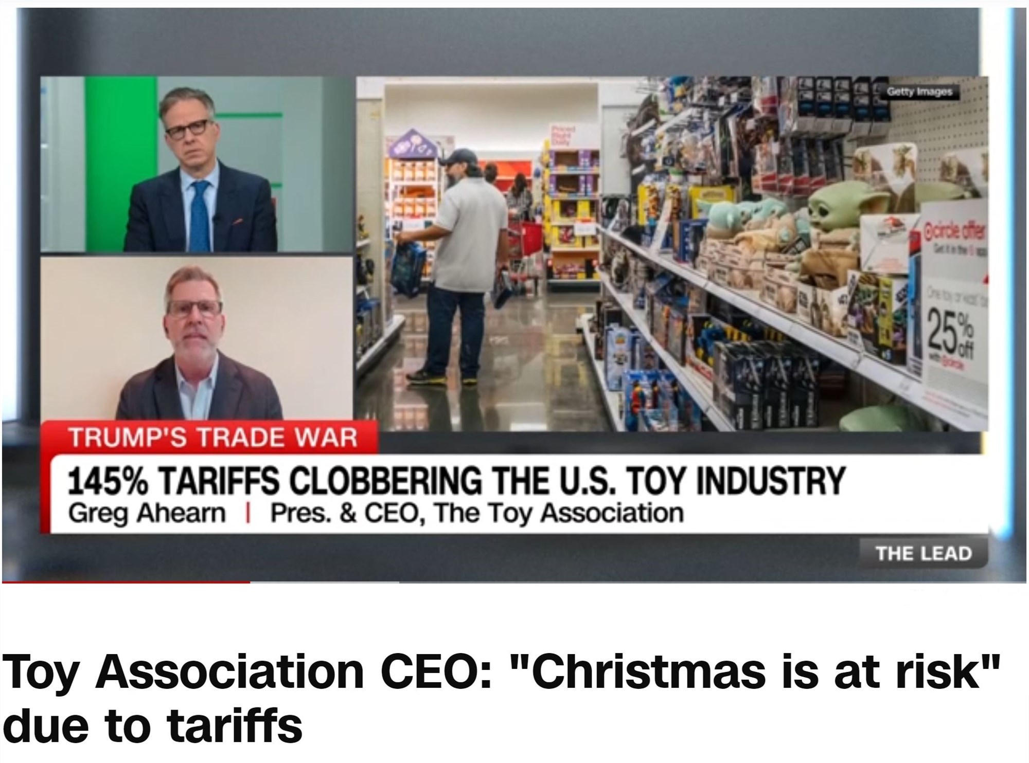 以玩具行業(yè)為例,代表全美850多家玩具制造商的玩具協(xié)會首席執(zhí)行官格雷格·阿赫恩對媒體直言,美國玩具行業(yè)高達96%的制造商和公司都是中小企業(yè),在現(xiàn)行的關(guān)稅稅率下,它們冒不起風險。