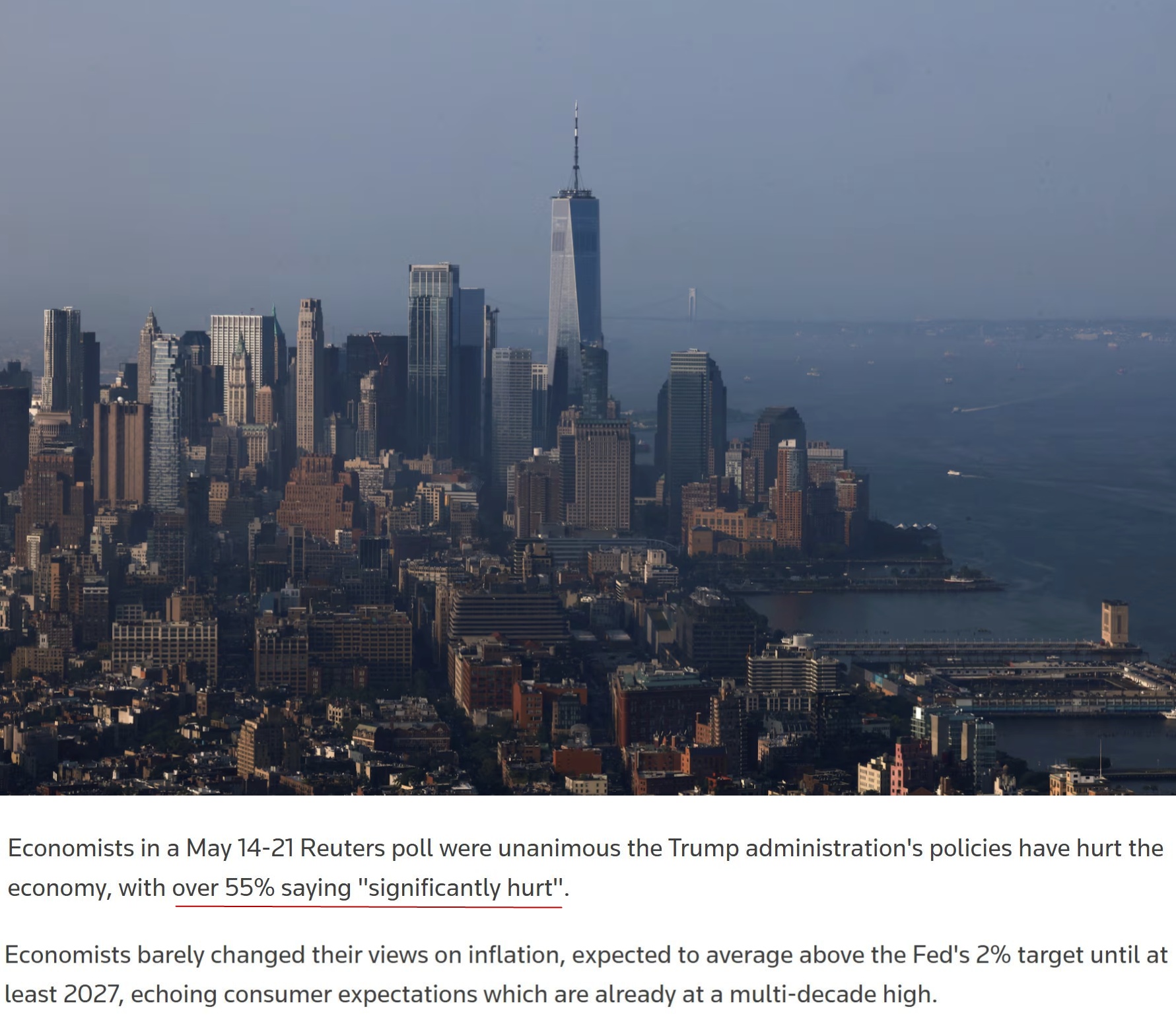 美國政府4月10日宣布暫緩對部分貿(mào)易伙伴征收“對等關(guān)稅”90天的期限即將過半,路透社近日公布的面向經(jīng)濟學(xué)家的最新民調(diào)顯示,受訪經(jīng)濟學(xué)家一致認為,白宮的相關(guān)政策對美國經(jīng)濟造成了負面影響,其中超過55%認為“造成了重大傷害”。