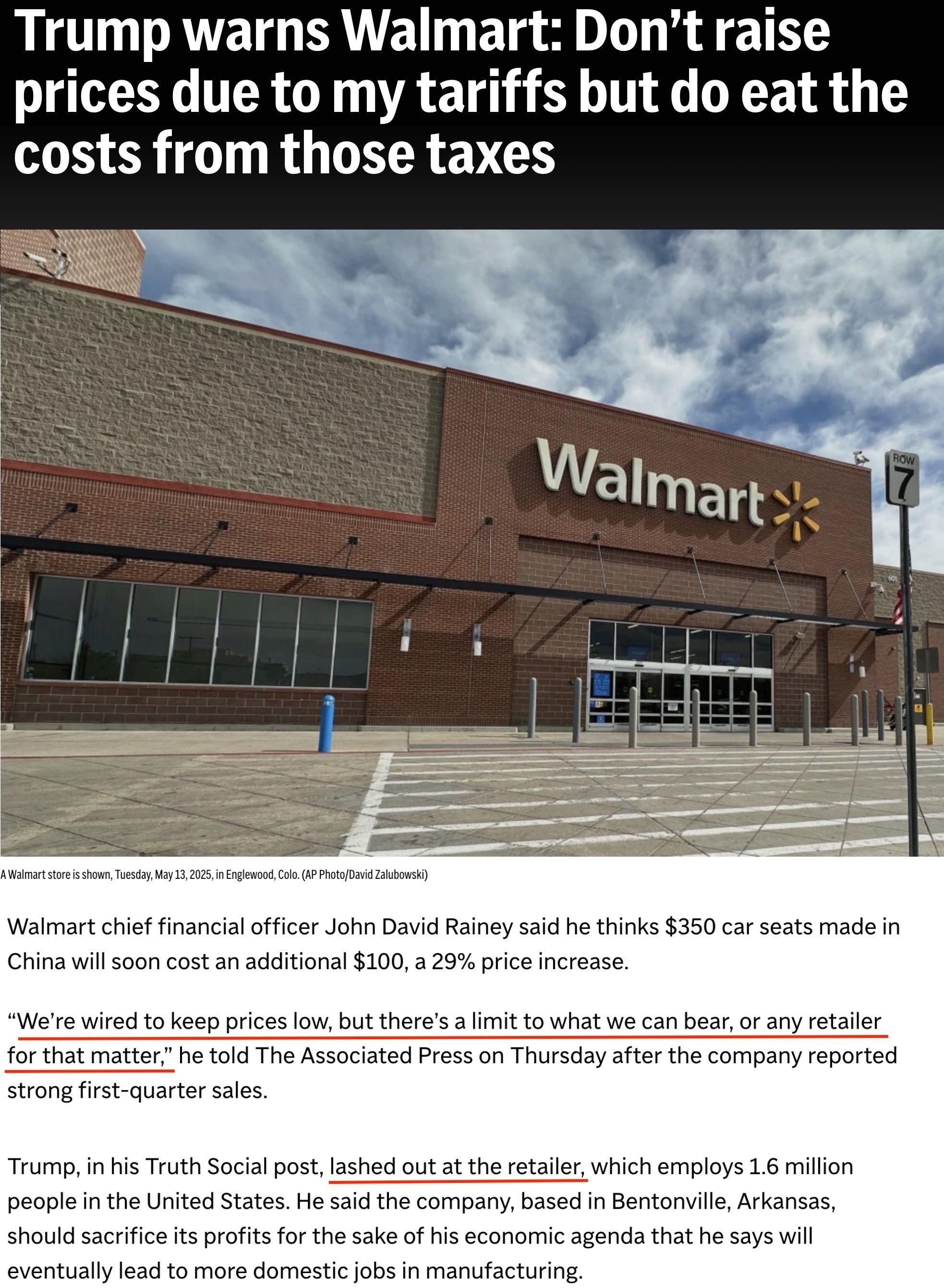 美國最大零售業(yè)企業(yè)沃爾瑪?shù)臐q價預(yù)告甚至惹惱了總統(tǒng)特朗普。特朗普在社交媒體上發(fā)文抨擊沃爾瑪將全面漲價歸咎于關(guān)稅,稱該公司應(yīng)該承擔(dān)美國關(guān)稅政策所帶來的額外成本,而不是向顧客收費。