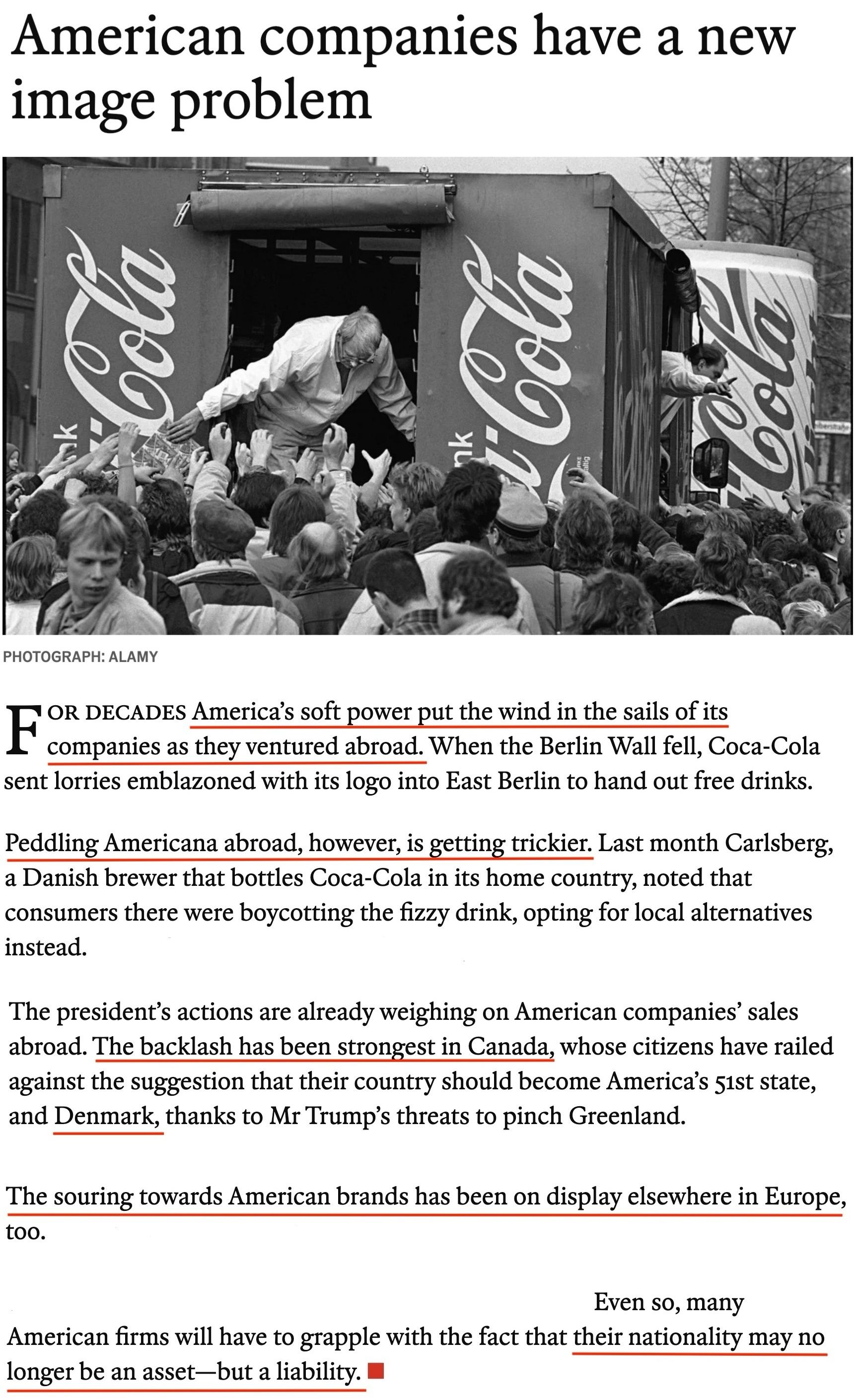 數(shù)十年來,美國的軟實力為美國企業(yè)在海外拓展業(yè)務(wù)提供了強大助力。然而,英國《經(jīng)濟學(xué)人》雜志日前刊文指出,如今在美國境外推銷美國品牌卻越來越困難。