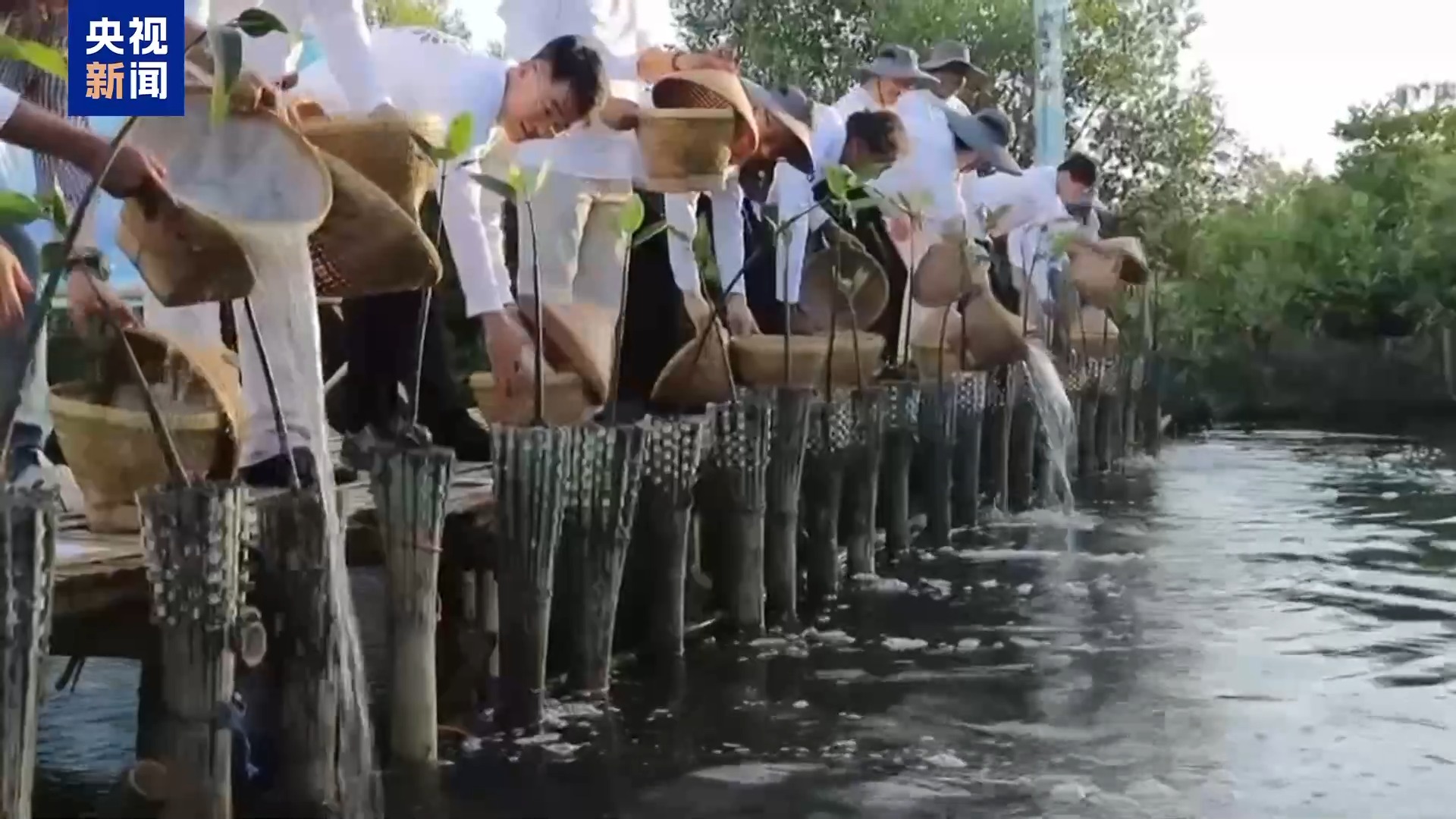 就在記者探訪的當天,又一批紅樹苗被種入沿海灘涂。這樣的生態(tài)投入也帶來了民生收益,周邊居民有了新的就業(yè)機會,漁業(yè)資源也逐漸恢復(fù),越來越多珍稀野生動物在此安家。