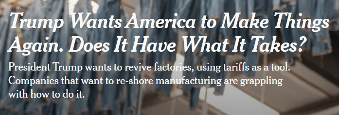 美國(guó)政府挑起了一場(chǎng)全球貿(mào)易戰(zhàn),它賭的是對(duì)其他國(guó)家征稅將會(huì)讓就業(yè)和工廠“重回”美國(guó)。然而,《紐約時(shí)報(bào)》近日發(fā)表的一篇文章對(duì)這一策略提出了強(qiáng)烈質(zhì)疑,并揭示了美國(guó)制造業(yè)回流面臨的巨大挑戰(zhàn)。