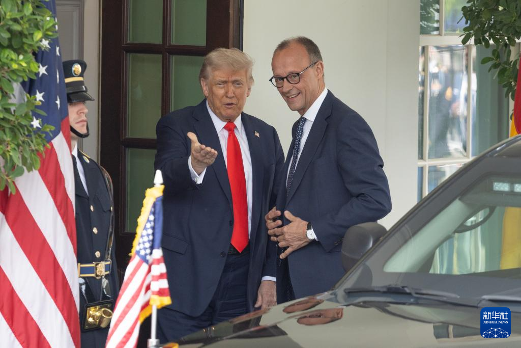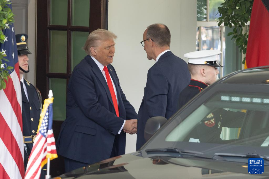 6月5日,美國(guó)總統(tǒng)特朗普在華盛頓白宮迎接到訪的德國(guó)總理默茨。新華社記者 胡友松 攝